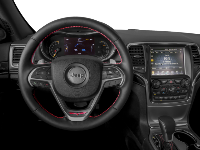 This 2017 Jeep Grand Cherokee Trailhawk in Diamond Black Crystal Pearlcoat includes the following features: 5.7L V8 HEMI 8-Speed Automatic 4WD Quick Order Package 28J, Grand Cherokee Trailhawk, 4D Sport Utility, 5.7L V8 HEMI, 8-Speed Automatic, 4WD, Diamond Black Crystal Pearlcoat, Black Leather, 1-Year SiriusXM Radio Service, 10 Speakers, 3.09 Rear Axle Ratio, 3.45 Rear Axle Ratio, 4-Wheel Disc Brakes, ABS brakes, Air Conditioning, Alloy wheels, AM/FM radio: SiriusXM, Anti-whiplash front head restraints, Audio memory, Auto-dimming door mirrors, Auto-Dimming Exterior Passenger Mirror, Auto-dimming Rear-View mirror, Auto-leveling suspension, Automatic temperature control, Blind Spot & Cross Path Detection, Brake assist, Bumpers: body-color, Compass, Delay-off headlights, Driver door bin, Driver vanity mirror, Dual front impact airbags, Dual front side impact airbags, Electronic Stability Control, Emergency communication system: Uconnect Access, Engine Oil Cooler, For Details Visit DriveUconnect.com, For More Info, Call 800-643-2112, Four wheel independent suspension, Front anti-roll bar, Front Bucket Seats, Front Center Armrest w/Storage, Front dual zone A/C, Front fog lights, Front reading lights, Fully automatic headlights, Garage door transmitter, GPS Antenna Input, Heated door mirrors, Heated front seats, Heated rear seats, Heated steering wheel, Illuminated entry, Instrument Cluster w/Off-Road Disp. Pages, Knee airbag, Leather Shift Knob, Low tire pressure warning, Memory seat, Normal Duty Suspension - Increased Travel, Occupant sensing airbag, Outside temperature display, Overhead airbag, Overhead console, Panic alarm, ParkView Rear Back-Up Camera, Passenger door bin, Passenger vanity mirror, Power door mirrors, Power driver seat, Power Liftgate, Power passenger seat, Power steering, Power Sunroof, Power windows, Radio data system, Radio: Uconnect 3C w/8.4 Display, Rear anti-roll bar, Rear reading lights, Rear seat center armrest, Rear window defroster, Rear window wiper, Remote keyless entry, Roof rack: rails only, Security system, SiriusXM Satellite Radio, Speed control, Speed-Sensitive Wipers, Split folding rear seat, Spoiler, Steering wheel mounted audio controls, Tachometer, Telescoping steering wheel, Tilt steering wheel, Traction control, Trailhawk Leather/Suede Seats, Trip computer, Turn signal indicator mirrors, Variably intermittent wipers, Ventilated front seats, and Wheels: 18 x 8.0 Off Road AluminuM. Recent Arrival!