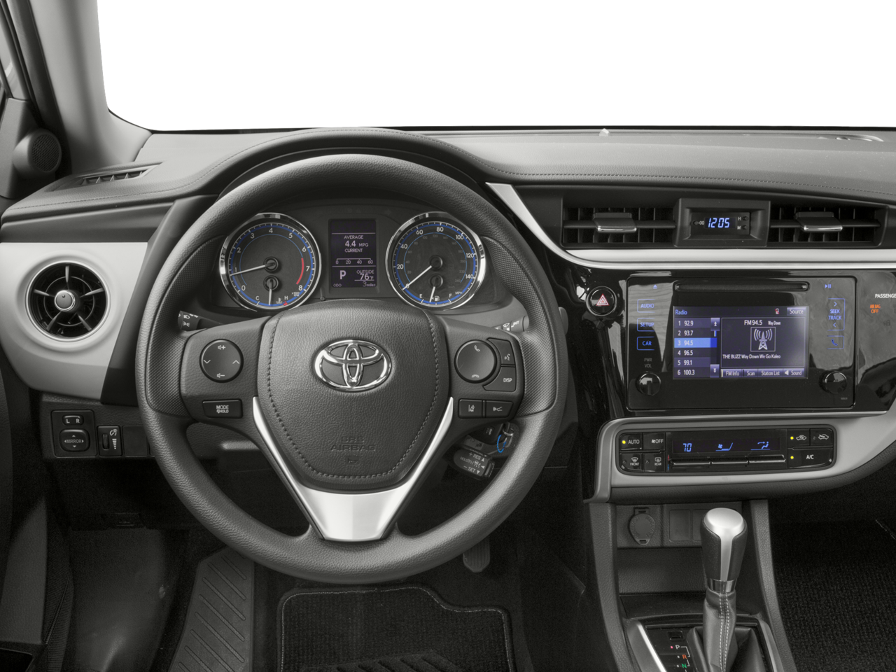This 2018 Toyota Corolla LE in Black Sand Pearl includes the following features: 1.8L I4 DOHC CVT FWD Corolla LE, 4D Sedan, 1.8L I4 DOHC, CVT, FWD, Black Sand Pearl, 6 Speakers, ABS brakes, Air Conditioning, AM/FM radio, Auto High-beam Headlights, Automatic temperature control, Brake assist, Bumpers: body-color, CD player, Delay-off headlights, Driver door bin, Driver vanity mirror, Dual front impact airbags, Dual front side impact airbags, Electronic Stability Control, Exterior Parking Camera Rear, Fabric Seat Trim, Front anti-roll bar, Front Bucket Seats, Front Center Armrest w/Storage, Front reading lights, Front wheel independent suspension, Fully automatic headlights, Heated door mirrors, Illuminated entry, Knee airbag, LED Daytime Running Lights (DRL), Low tire pressure warning, Occupant sensing airbag, Outside temperature display, Overhead airbag, Panic alarm, Passenger door bin, Passenger vanity mirror, Power door mirrors, Power steering, Power windows, Radio data system, Radio: Entune Audio Plus w/Connected Navigation, Radio: Entune Audio w/6.1 Screen, Rear anti-roll bar, Rear seat center armrest, Rear window defroster, Remote keyless entry, Speed control, Speed-sensing steering, Split folding rear seat, Steering wheel mounted audio controls, Tachometer, Telescoping steering wheel, Tilt & Slide Moonroof, Tilt steering wheel, Traction control, Trip computer, Variably intermittent wipers, and Wheels: 16 x 6.5 Wide Vent Steel. Recent Arrival! 28/36 City/Highway MPG