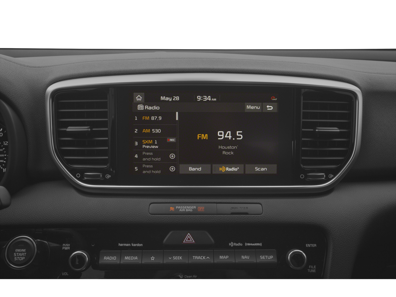 - Radio: AM/FM/MP3 Premium Audio System -inc: 320 Watts, 8" touchscreen, UVO link, navigation, harman/kardon sound system, 8 speakers including subwoofer and tweeters, Clari-Fi digital audio restoration, SiriusXM satellite radio, additional USB port, Bluetooth® wireless technology, voice control, Android Auto and Apple CarPlay