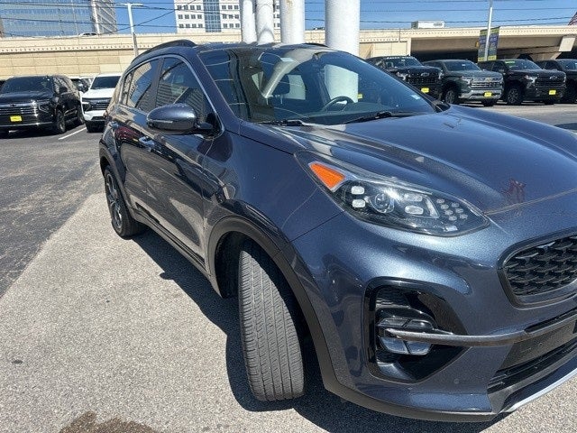 This 2020 Kia Sportage SX in Pacific Blue includes the following features: 2.0L I4 DGI Turbocharged 6-Speed Automatic Electronic with Overdrive FWD 19 Alloy Wheels, 4-Wheel Disc Brakes, 8 Speakers, ABS brakes, Air Conditioning, Alloy wheels, AM/FM radio: SiriusXM, Apple CarPlay & Android Auto, Auto High-beam Headlights, Auto-dimming Rear-View mirror, Automatic temperature control, Axle Ratio: TBD, Brake assist, Bumpers: body-color, Cargo Tray, Carpet Floor Mats, Compass, Delay-off headlights, Driver door bin, Driver vanity mirror, Dual front impact airbags, Dual front side impact airbags, Electronic Stability Control, Emergency communication system: UVO link, Exterior Parking Camera Rear, Four wheel independent suspension, Front anti-roll bar, Front Bucket Seats, Front Center Armrest, Front dual zone A/C, Front fog lights, Front reading lights, Fully automatic headlights, Garage door transmitter: HomeLink, Heated & Ventilated Front Bucket Seats, Heated door mirrors, Heated front seats, Heated steering wheel, Illuminated entry, Leather Seat Trim, Leather Shift Knob, Leather steering wheel, Low tire pressure warning, Navigation System, Occupant sensing airbag, Outside temperature display, Overhead airbag, Overhead console, Panic alarm, Passenger door bin, Passenger vanity mirror, Power door mirrors, Power driver seat, Power Liftgate, Power moonroof, Power passenger seat, Power steering, Power windows, Radio: AM/FM/MP3 Premium Audio System, Rear anti-roll bar, Rear seat center armrest, Rear window defroster, Rear window wiper, Remote keyless entry, Roof rack: rails only, Security system, Speed control, Speed-sensing steering, Split folding rear seat, Spoiler, Sport steering wheel, Steering wheel mounted audio controls, Tachometer, Telescoping steering wheel, Tilt steering wheel, Traction control, Trip computer, Turn signal indicator mirrors, Variably intermittent wipers, and Ventilated front seats. Recent Arrival! 20/28 City/Highway MPG