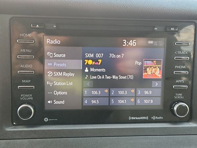 - Radio: Entune 3.0 Audio Plus w/App Suite -inc: 6 speakers, 7-inch touchscreen, AM/FM, CD player, auxiliary port, USB 2.0 port w/iPod connectivity and control, advanced voice recognition, hands-free phone capability and music streaming via Bluetooth® wireless technology, Scout GPS Link compatibility w/3-year trial, Siri Eyes Free, HD Radio, SiriusXM Satellite Radio w/3-month All Access trial