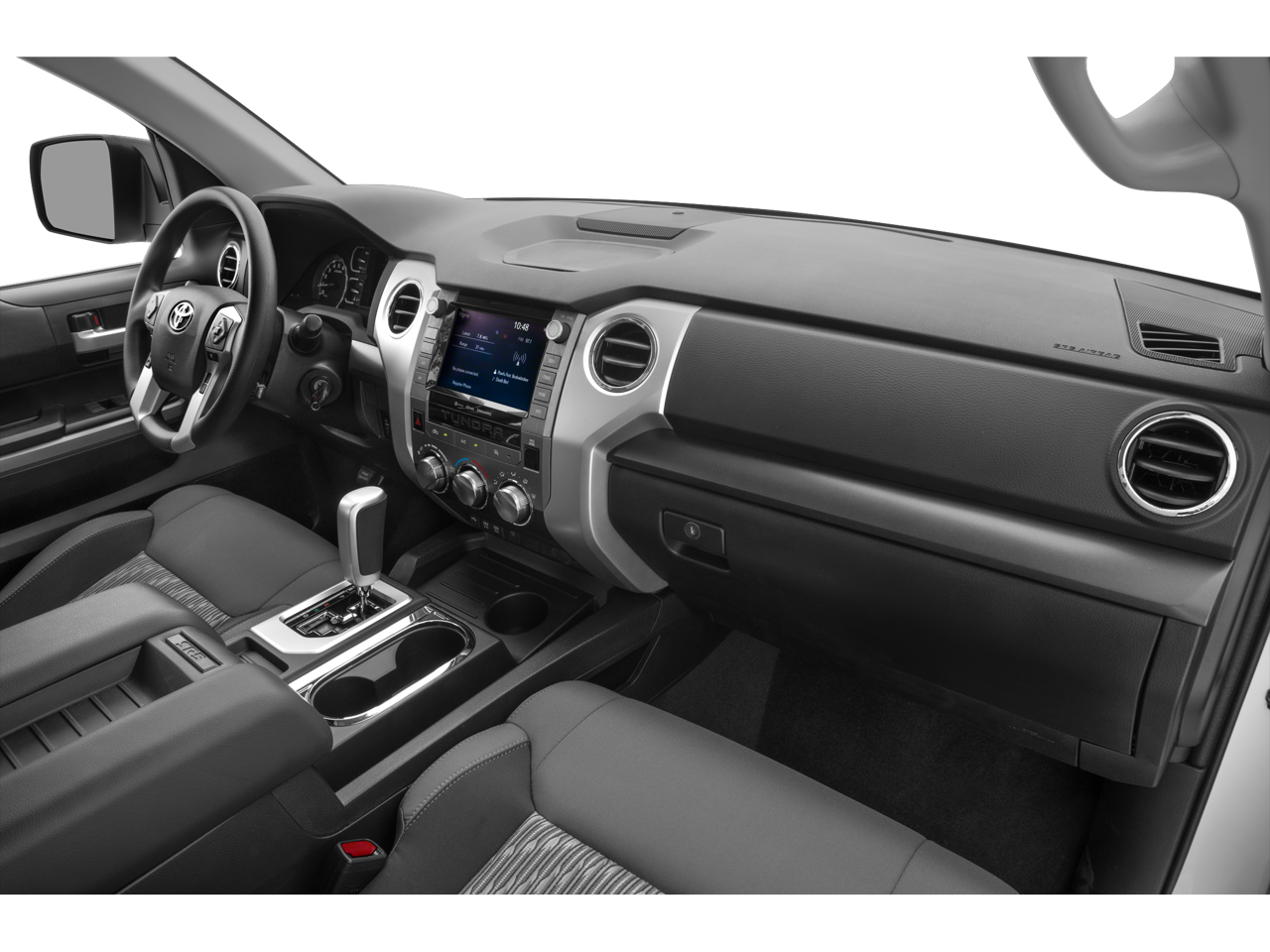 This 2020 Toyota Tundra SR5 in Magnetic Gray Metallic includes the following features: i-Force 5.7L V8 DOHC 32V LEV 6-Speed Automatic Electronic with Overdrive RWD Tundra SR5, i-Force 5.7L V8 DOHC 32V LEV, 6-Speed Automatic Electronic with Overdrive, RWD, Magnetic Gray Metallic, Black Cloth, ABS brakes, Active Cruise Control, Electronic Stability Control, Heated door mirrors, Illuminated entry, Low tire pressure warning, Remote keyless entry, Traction control, 18 x 8J Styled Steel Wheels, 3-Passenger Front Bench Seat, 4-Wheel Disc Brakes, 4.30 Axle Ratio, 7 Speakers, Air Conditioning, AM/FM radio: SiriusXM, Apple CarPlay/Android Auto, Auto High-beam Headlights, Auto-dimming Rear-View mirror, Brake assist, Delay-off headlights, Driver door bin, Driver vanity mirror, Dual front impact airbags, Dual front side impact airbags, Emergency communication system: Safety Connect with 1-year trial, Exterior Parking Camera Rear, Fabric Seat Trim, Front anti-roll bar, Front Center Armrest w/Storage, Front Fog & Driving Lights, Front fog lights, Front reading lights, Front wheel independent suspension, Fully automatic headlights, Garage door transmitter: HomeLink, Illuminated Entry System, Knee airbag, Occupant sensing airbag, Outside temperature display, Overhead airbag, Overhead console, Panic alarm, Passenger door bin, Passenger vanity mirror, Power door mirrors, Power steering, Power windows, Radio data system, Radio: Audio Plus AM/FM/HD Radio, Rear reading lights, Rear step bumper, Rear Under Seat Storage Tray, Safety Connect, SiriusXM Radio, Sliding Rear Window w/Privacy Glass, Speed control, Speed-sensing steering, Split folding rear seat, Steering wheel mounted audio controls, Tachometer, Tilt steering wheel, Trip computer, Variably intermittent wipers, and Voltmeter. Recent Arrival!
