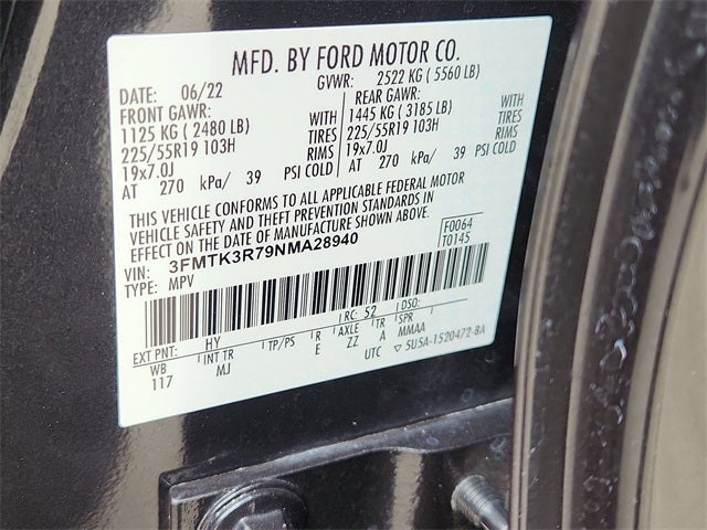 This 2022 Ford Mustang Mach-E Premium in Gray Metallic includes the following features: Electric Motor Single-Speed Automatic RWD Equipment Group 300A, Interior Protection Package (Pre-Installed) (Cargo Area Protector and Front & Rear Floor Liners), Mustang Mach-E Premium, 4D Sport Utility, Electric Motor, Single-Speed Automatic, RWD, Gray Metallic, Black Onyx Premium Synthetic, 10 Speakers, 4-Wheel Disc Brakes, ABS brakes, Active Park Assist Prep Kit, Air Conditioning, Alloy wheels, AM/FM radio: SiriusXM with 360L, AM/FM Stereo, Apple CarPlay/Android Auto, Auto High-beam Headlights, Auto-dimming Rear-View mirror, Automatic temperature control, Axle Ratio: 9.05, Brake assist, Bumpers: body-color, Compass, Delay-off headlights, Driver door bin, Driver vanity mirror, Dual front impact airbags, Dual front side impact airbags, Electronic Stability Control, Emergency communication system: 911 Assist, Exterior Parking Camera Rear, Four wheel independent suspension, Front anti-roll bar, Front Bucket Seats, Front Center Armrest, Front dual zone A/C, Front License Plate Bracket, Front reading lights, Fully automatic headlights, Garage door transmitter, Heated door mirrors, Heated front seats, Heated Perforated ActiveX Bucket Seats, Heated steering wheel, Illuminated entry, Knee airbag, Low tire pressure warning, Memory seat, Navigation system: Connected Navigation, Occupant sensing airbag, Outside temperature display, Overhead airbag, Overhead console, Panic alarm, Passenger door bin, Passenger vanity mirror, Power door mirrors, Power driver seat, Power Liftgate, Power passenger seat, Power steering, Power windows, Radio data system, Rain sensing wipers, Rear anti-roll bar, Rear seat center armrest, Rear side impact airbag, Rear window defroster, Rear window wiper, Remote keyless entry, Security system, SiriusXM Radio w/360L, Speed control, Speed-sensing steering, Speed-Sensitive Wipers, Split folding rear seat, Spoiler, Steering wheel mounted audio controls, SYNC 4A w/Enhanced Voice Recognition, Telescoping steering wheel, Tilt steering wheel, Traction control, Trip computer, Turn signal indicator mirrors, Variably intermittent wipers, and Wheels: 19 Machined-Face Aluminum. Recent Arrival! 104/90 City/Highway MPG