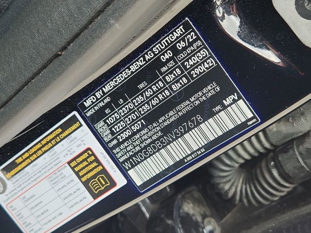 This 2022 Mercedes-Benz GLC GLC 300 in Black includes the following features: I4 9-Speed Automatic RWD GLC 300, 4D Sport Utility, I4, 9-Speed Automatic, RWD, Black, 10.25 Center Touchscreen Display, 3.27 Axle Ratio, 4-Way Lumbar Support, 4-Wheel Disc Brakes, 6 Speakers, ABS brakes, Air Conditioning, Alloy wheels, AM/FM radio, Apple CarPlay®/Android Auto®, Auto High-beam Headlights, Auto tilt-away steering wheel, Auto-dimming door mirrors, Auto-dimming Rear-View mirror, Automatic temperature control, Brake assist, Bumpers: body-color, Child-Seat-Sensing Airbag, Delay-off headlights, Driver door bin, Driver vanity mirror, Dual front impact airbags, Dual front side impact airbags, Electronic Stability Control, Emergency communication system: eCall Emergency System, Exterior Parking Camera Rear, Four wheel independent suspension, Front anti-roll bar, Front Bucket Seats, Front Center Armrest, Front dual zone A/C, Front reading lights, Fully automatic headlights, Garage door transmitter: HomeLink, Genuine wood dashboard insert, Heated door mirrors, Heated Front Bucket Seats, Heated front seats, Illuminated entry, Knee airbag, Leather steering wheel, Low tire pressure warning, MB-Tex Upholstery, Memory seat, Occupant sensing airbag, Outside temperature display, Overhead airbag, Overhead console, Panic alarm, Passenger door bin, Passenger vanity mirror, Power door mirrors, Power driver seat, Power Front Seat w/Driver Memory, Power Liftgate, Power passenger seat, Power steering, Power windows, Radio data system, Radio: MBUX Multimedia System, Rain sensing wipers, Rear anti-roll bar, Rear fog lights, Rear reading lights, Rear seat center armrest, Rear window defroster, Rear window wiper, Remote keyless entry, Roof rack: rails only, Security system, Speed control, Speed-sensing steering, Split folding rear seat, Spoiler, Steering wheel memory, Steering wheel mounted audio controls, Tachometer, Telescoping steering wheel, Tilt steering wheel, Traction control, Trip computer, Turn signal indicator mirrors, Variably intermittent wipers, and Wheels: 8J x 18 ET 38 Split 5-Spoke. Recent Arrival! 22/27 City/Highway MPG