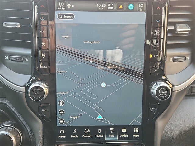 This 2022 Ram 1500 Big Horn/Lone Star in Granite Crystal Metallic Clearcoat includes the following features: HEMI 5.7L V8 Multi Displacement VVT 8-Speed Automatic 4WD Big Horn Level B Equipment Group (DISC) (115V Auxiliary Power Outlet, 400W Inverter, 4G LTE Wi-Fi Hot Spot, Air Conditioning ATC w/Dual Zone Control, Apple CarPlay, Auto-Dimming Rear-View Mirror, Black Premium Power Mirrors (GUL), Bluetooth® Handsfree Phone & Audio, Class IV Receiver Hitch, Cluster 7.0 TFT Color Display, Connectivity - US/Canada, For More Info, Call 800-643-2112, Google Android Auto, Heated Steering Wheel, Integrated Center Stack Radio, ParkSense Front/Rear Park Assist w/Stop, Power 2-Way Driver Lumbar Adjust, Power 8-Way Driver Seat, Radio: Uconnect 5 W w/8.4 Display, Rear Dome w/On/Off Switch Lamp, Rear Power Sliding Window, Rear Underseat Compartment Storage, Rear Window Defroster, Remote Start System, Security Alarm, SiriusXM Radio Service, SiriusXM Satellite Radio, Sun Visors w/Illuminated Vanity Mirrors, and USB Host Flip), Night Edition (DISC) (3 Rear Seat Head Restraints, 4 Way Front Headrests, Anti-Spin Differential Rear Axle, Black Exterior Truck Badging, Black Headlamp Bezels, Bucket Seats, Deluxe Cloth Bucket Seats, Dual Exhaust w/Black Tips, Front Seat Back Map Pockets, Full Length Floor Console, Rear 60/40 Folding Seat, Rear Center Armrest, and Wheels: 20 x 9.0 Premium Paint/Polished (DISC)), Quick Order Package 27R Lone Star (Regional), 1500 Big Horn/Lone Star, 4D Crew Cab, HEMI 5.7L V8 Multi Displacement VVT, 8-Speed Automatic, 4WD, Granite Crystal Metallic Clearcoat, Black Cloth, 3.21 Rear Axle Ratio, 4-Wheel Disc Brakes, 48V Belt Starter Generator, 6 Speakers, 9 Amplified Speakers w/Subwoofer, ABS brakes, Air Conditioning, Alloy wheels, AM/FM radio, Black Exterior Mirrors, Brake assist, Bumpers: chrome, Cloth Bench Seat, Compass, Connected Travel & Traffic Services, Convex Wide-Angle Mirror Insert, Delay-off headlights, Driver door bin, Dual front impact airbags, Dual front side impact airbags, Electronic Stability Control, Emergency communication system: SiriusXM Guardian, Front anti-roll bar, Front Center Armrest w/Storage, Front fog lights, Front License Plate Bracket, Front reading lights, Front wheel independent suspension, Fully automatic headlights, Global Telematics Box Module (TBM), GPS Antenna Input, GPS Navigation, Heated door mirrors, Illuminated entry, Integrated Voice Command w/Bluetooth®, Leather steering wheel, Low tire pressure warning, MOPAR Front & Rear Rubber Floor Mats, Occupant sensing airbag, Outside temperature display, Overhead airbag, Overhead console, Panic alarm, ParkView Rear Back-Up Camera, Passenger door bin, Passenger vanity mirror, Power door mirrors, Power steering, Power windows, Radio data system, Radio: Uconnect 3 w/5 Display, Radio: Uconnect 5 Nav w/12.0 Display, Rear anti-roll bar, Rear seat center armrest, Rear step bumper, Rear Underseat Compartment Storage (DISC), Remote keyless entry, SiriusXM w/360L, Speed control, Split folding rear seat, Steering wheel mounted audio controls, Tachometer, Telescoping steering wheel, Tilt steering wheel, Traction control, Trip computer, Variably intermittent wipers,