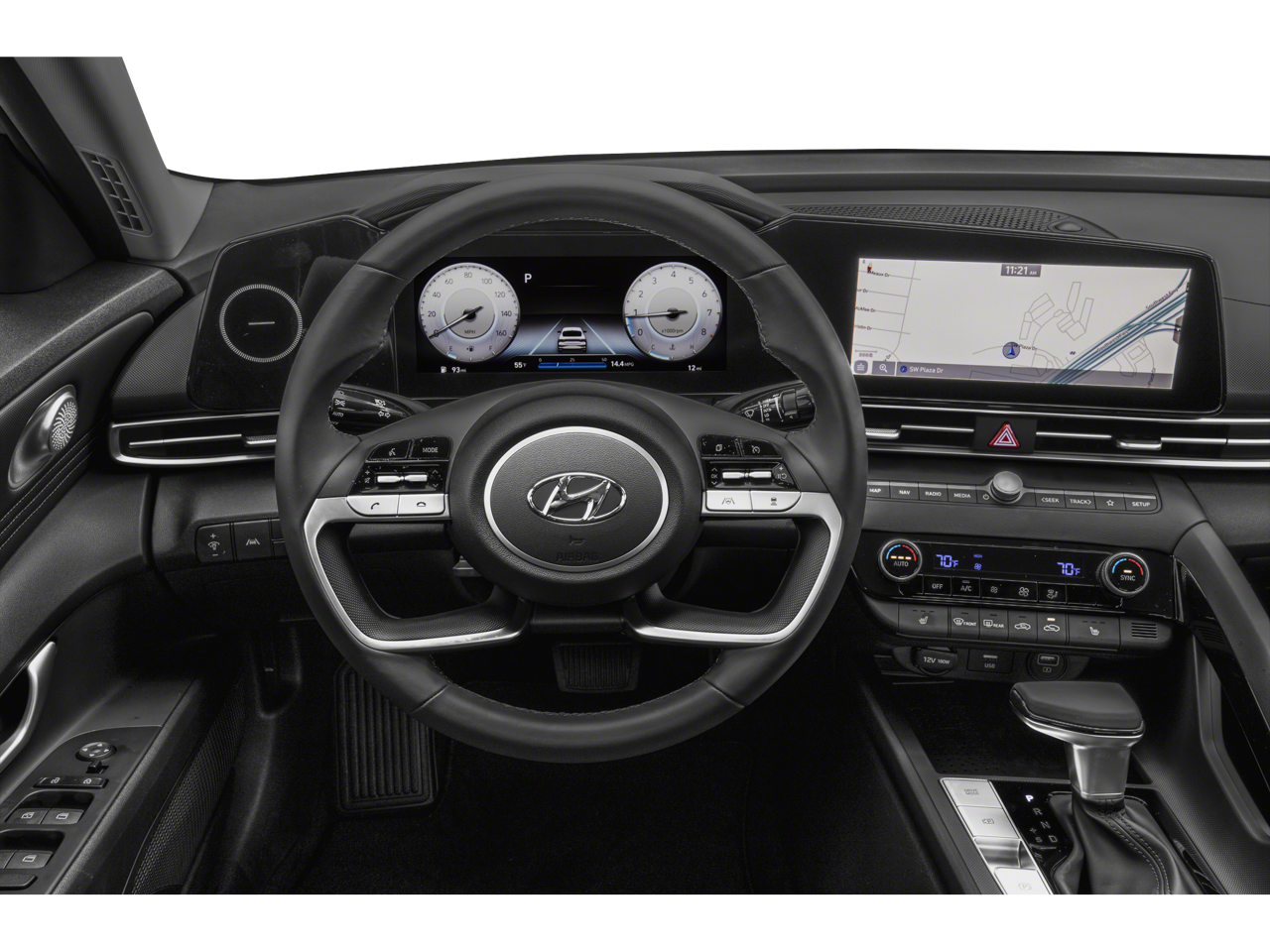 This 2023 Hyundai Elantra Limited in Phantom Black includes the following features: I4 CVT FWD Option Group 01, 17 x 7.0J Alloy Wheels, 4-Wheel Disc Brakes, 8 Speakers, ABS brakes, Air Conditioning, Alloy wheels, AM/FM radio: SiriusXM, Apple CarPlay & Android Auto, Auto High-beam Headlights, Auto-dimming Rear-View mirror, Automatic temperature control, Brake assist, Bumpers: body-color, Cargo Net, Carpeted Floor Mats, Delay-off headlights, Driver door bin, Driver vanity mirror, Dual front impact airbags, Dual front side impact airbags, Electronic Stability Control, Emergency communication system: Blue Link Connected Car Service (3-year complimentary subscription), Exterior Parking Camera Rear, Front anti-roll bar, Front Bucket Seats, Front Center Armrest, Front dual zone A/C, Front reading lights, Front wheel independent suspension, Fully automatic headlights, Heated door mirrors, Heated Front Seats, Heated front seats, Illuminated entry, Leather-Trimmed Seats, Low tire pressure warning, Mudguards, Navigation System, Occupant sensing airbag, Outside temperature display, Overhead airbag, Overhead console, Panic alarm, Passenger door bin, Passenger vanity mirror, Power door mirrors, Power driver seat, Power moonroof, Power steering, Power windows, Radio: AM/FM/HD/SiriusXM Display Audio, Rear Bumper Applique, Rear seat center armrest, Rear window defroster, Remote keyless entry, Security system, Speed control, Speed-sensing steering, Split folding rear seat, Steering wheel mounted audio controls, Tachometer, Telescoping steering wheel, Tilt steering wheel, Traction control, Trip computer, Turn signal indicator mirrors, and Variably intermittent wipers. Recent Arrival! 30/40 City/Highway MPG