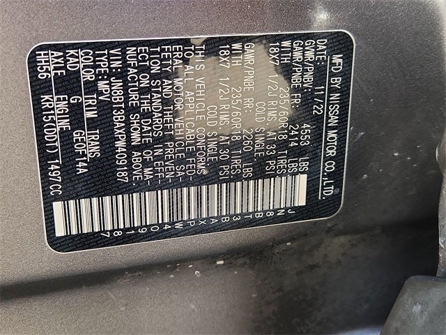 This 2023 Nissan Rogue SV in Gun Metallic includes the following features: 1.5L I3 Turbocharged DOHC 12V LEV3-ULEV50 201hp CVT with Xtronic FWD Rogue SV, 4D Sport Utility, 1.5L I3 Turbocharged DOHC 12V LEV3-ULEV50 201hp, CVT with Xtronic, FWD, Gun Metallic, Charcoal Cloth, 18 Aluminum Alloy Wheels, 4-Wheel Disc Brakes, 5.604 Axle Ratio, 6 Speakers, ABS brakes, Air Conditioning, Alloy wheels, AM/FM Radio, AM/FM radio: SiriusXM, Auto High-beam Headlights, Automatic temperature control, Black Splash Guards (Set of 4), Brake assist, Bumpers: body-color, Chrome Rear Bumper Protector, Cloth Seat Trim, Delay-off headlights, Driver door bin, Driver vanity mirror, Dual front impact airbags, Dual front side impact airbags, Electronic Stability Control, Emergency communication system: NissanConnect Services, Floor Mats w/1-Piece Cargo Area Protector, Four wheel independent suspension, Front anti-roll bar, Front Bucket Seats, Front Center Armrest, Front dual zone A/C, Front reading lights, Fully automatic headlights, Heated door mirrors, Illuminated entry, Knee airbag, Low tire pressure warning, NissanConnect featuring Apple CarPlay and Android Auto, Occupant sensing airbag, Outside temperature display, Overhead airbag, Overhead console, Panic alarm, Passenger door bin, Passenger vanity mirror, Power door mirrors, Power driver seat, Power steering, Power windows, Radio data system, Rear anti-roll bar, Rear Parking Sensors, Rear seat center armrest, Rear side impact airbag, Rear window defroster, Rear window wiper, Remote keyless entry, Security system, Speed control, Speed-Sensitive Wipers, Split folding rear seat, Spoiler, Steering wheel mounted audio controls, Tachometer, Telescoping steering wheel, Tilt steering wheel, Traction control, Trip computer, Turn signal indicator mirrors, and Variably intermittent wipers. 30/37 City/Highway MPG