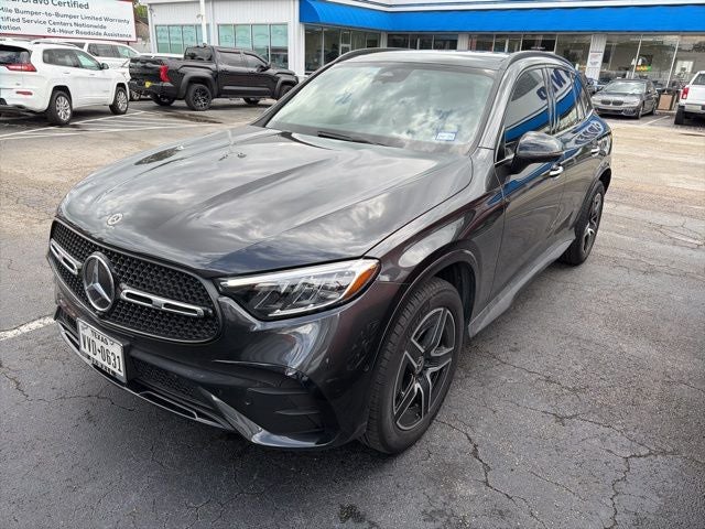 This 2024 Mercedes-Benz GLC GLC 300 in Black includes the following features: I4 9-Speed Automatic 4MATIC® GLC 300 4MATIC®, 4D Sport Utility, I4, 9-Speed Automatic, 4MATIC®, Black, AMG Black Leatherette, 11.9 Center Touchscreen Display, 16-Way Power Front Seats w/Memory/Lumbar/Thigh Ext, 18 10-Spoke Wheels, 3 USB C-Ports, 4-Way Power Lumbar Support, 4-Wheel Disc Brakes, 8 Speakers, ABS brakes, Air Conditioning, Alloy wheels, AM/FM radio: SiriusXM, Apple CarPlay®/Android Auto®, Auto High-beam Headlights, Auto tilt-away steering wheel, Auto-dimming Rear-View mirror, Automatic temperature control, Brake assist, Bumpers: body-color, Child-Seat-Sensing Airbag, Compass, Delay-off headlights, Driver door bin, Driver vanity mirror, Dual front impact airbags, Dual front side impact airbags, Electronic Stability Control, Emergency communication system: eCall Emergency System, Exterior Parking Camera Rear, Four wheel independent suspension, Front anti-roll bar, Front Bucket Seats, Front Center Armrest, Front dual zone A/C, Front reading lights, Fully automatic headlights, Garage door transmitter: HomeLink, Genuine wood dashboard insert, HD Radio, Head restraints memory, Heated door mirrors, Heated Front Bucket Seats, Heated front seats, Illuminated entry, Inductive Wireless Charging, Knee airbag, Leather steering wheel, Low tire pressure warning, MB-Tex Upholstery, MBUX Intelligent Vehicle Assistant (Hey Mercedes), Memory seat, Occupant sensing airbag, Outside temperature display, Overhead airbag, Overhead console, Panic alarm, Passenger door bin, Passenger vanity mirror, Power adjustable front head restraints, Power door mirrors, Power driver seat, Power Liftgate, Power passenger seat, Power steering, Power windows, Premium audio system: MBUX, Radio data system, Radio: AM/FM/HD, Rain sensing wipers, Rear anti-roll bar, Rear fog lights, Rear reading lights, Rear seat center armrest, Rear window defroster, Rear window wiper, Remote keyless entry, Security system, SiriusXM Satellite Radio, Speed control, Speed-sensing steering, Split folding rear seat, Spoiler, Steering wheel memory, Steering wheel mounted audio controls, Tachometer, TBD Axle Ratio, Telescoping steering wheel, Tilt steering wheel, Traction control, Trip computer, Turn signal indicator mirrors, Variably intermittent wipers, Wireless Android Auto®, and Wireless Apple CarPlay®. 24/32 City/Highway MPG