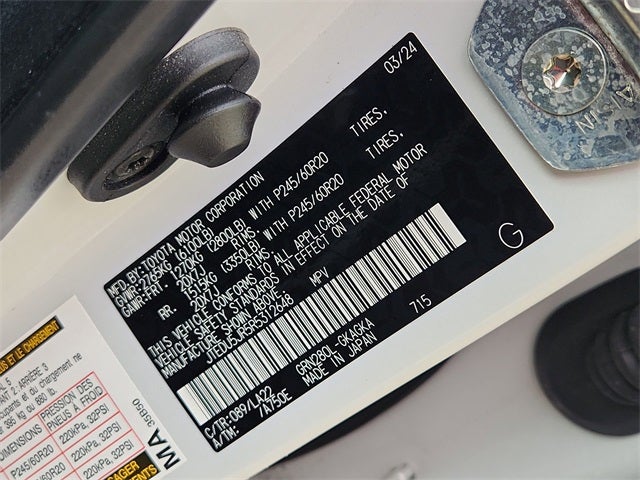 This 2024 Toyota 4Runner Limited in Wind Chill Pearl includes the following features: 4.0L V6 DOHC 24V 5-Speed with ECT RWD 4Runner Limited, 4D Sport Utility, 4.0L V6 DOHC 24V, 5-Speed with ECT, RWD, Wind Chill Pearl, Black/Graphite Leather, 15 Speakers, 4-Wheel Disc Brakes, ABS brakes, Air Conditioning, Alloy wheels, AM/FM radio: SiriusXM, Anti-whiplash front head restraints, Apple CarPlay/Android Auto, Auto High-beam Headlights, Auto-dimming Rear-View mirror, Automatic temperature control, Brake assist, Bumpers: body-color, Compass, Delay-off headlights, Driver door bin, Driver vanity mirror, Dual front impact airbags, Dual front side impact airbags, Dual Zone Auto Climate Control, Electronic Stability Control, Emergency communication system: Safety Connect (1-year trial), Exterior Parking Camera Rear, Front anti-roll bar, Front Bucket Seats, Front Center Armrest, Front dual zone A/C, Front fog lights, Front reading lights, Front wheel independent suspension, Fully automatic headlights, Garage Door Opener, Garage door transmitter: HomeLink, Heated & Ventilated Front Bucket Seats, Heated door mirrors, Heated front seats, Heated Outside Rear-View Mirrors, Heated steering wheel, Illuminated entry, Knee airbag, Leather Seat Trim, Low tire pressure warning, Memory seat, Moonroof w/Tilt Up & Slide, Navigation System, Occupant sensing airbag, Outside temperature display, Overhead airbag, Overhead console, Panic alarm, Panoramic Back Monitor, Passenger door bin, Passenger vanity mirror, Power door mirrors, Power driver seat, Power moonroof, Power passenger seat, Power steering, Power windows, Radio: Premium Audio w/JBL, Rear anti-roll bar, Rear seat center armrest, Rear window defroster, Rear window wiper, Remote keyless entry, Security system, Silver Roof Rails, Speed control, Speed-sensing steering, Split folding rear seat, Spoiler, Steering wheel mounted audio controls, Tachometer, Telescoping steering wheel, Tilt steering wheel, Traction control, Trip computer, Turn signal indicator mirrors, Variably intermittent wipers, Ventilated front seats, and Wheels: 20 Unique Dual 6-Spoke Alloy. Recent Arrival!