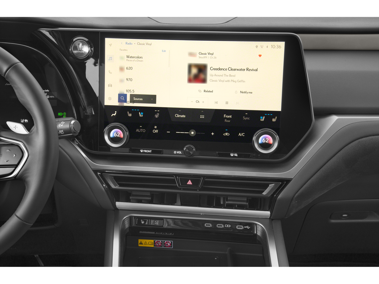- Radio: Lexus Interface -inc: 12-speaker Lexus premium sound, 14-inch high definition touchscreen, wireless Apple CarPlay integration and wireless Android Auto compatibility